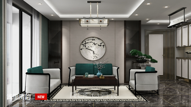 2、新中式全屋定制讲究线条简单流畅、精雕细琢,融合传统文化的象征性元素,如中国结,但是造型更为简洁,大面积的留白营造“博大”的视觉感受,既透露着浑然天成的气息,又体现出巧夺天工的精细。